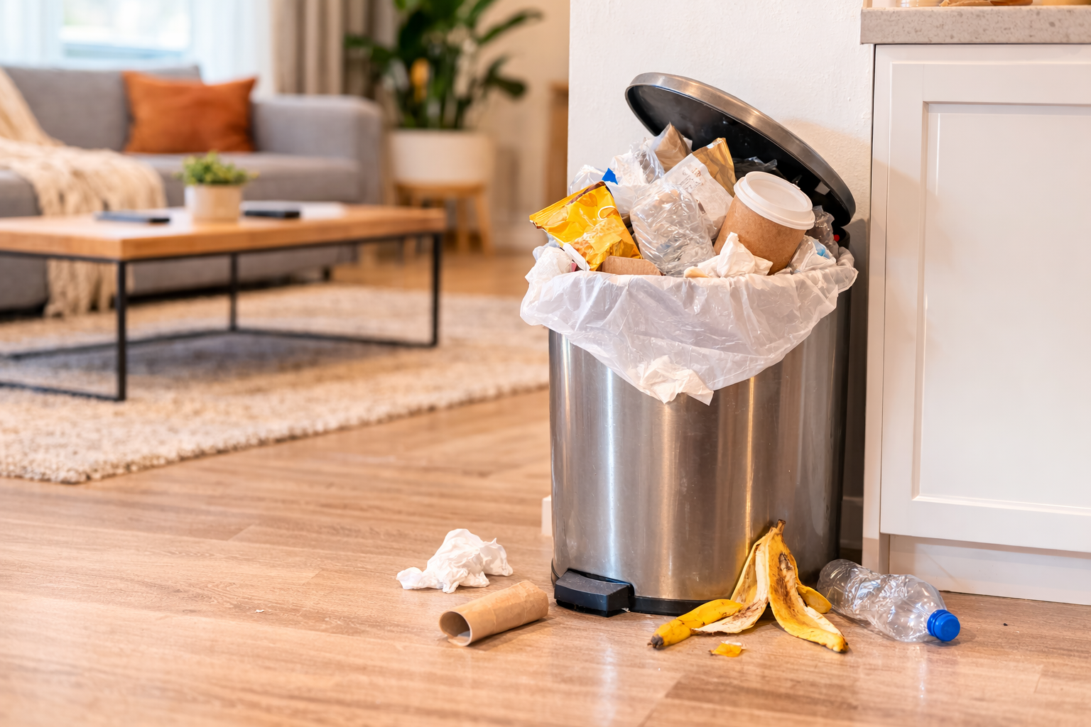 Even a beautiful Airbnb feels dirty when the trash is overflowing.