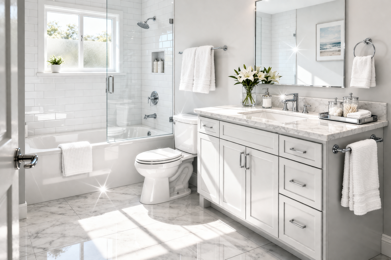 Bathrooms are the room where guests look hardest for reassurance. No stray hair, no water streaks, no mystery odors, no guessing about sanitation. One overlooked detail here—a smudge on the mirror, a ring in the tub—can override an otherwise flawless turnover.